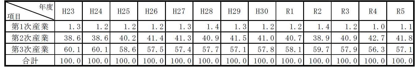 産業構造の推移を県内総生産の構成比によって比較すると、第3 表のとおりである。