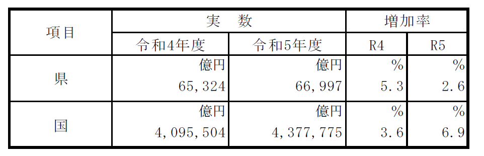 なお、国の経済成長率は名目で4.9%増、実質で0.7%増であった。